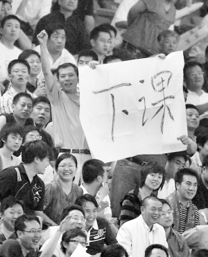 距離開(kāi)賽還有兩個(gè)半小時(shí)的時(shí)候,水滴體育場(chǎng)附近的餐館爆滿(mǎn),到處可見(jiàn)用紅色裝扮的球迷。開(kāi)賽后,球迷為國(guó)足加油助威。第32分鐘,周海濱的進(jìn)球曾一度讓球迷看到國(guó)足晉級(jí)十強(qiáng)賽的希望。人浪、喝彩聲等在看臺(tái)上傳播開(kāi)來(lái)。不過(guò),球迷的興奮僅僅維持了10分鐘。埃馬德的進(jìn)球讓水滴體育場(chǎng)一下子沉寂下來(lái)。第65分鐘,阿克納姆的進(jìn)球則讓球迷極度失望。在沉寂片刻后,球迷將下課聲送給了看臺(tái)上觀(guān)戰(zhàn)的中國(guó)足協(xié)專(zhuān)職副主席謝亞龍。當(dāng)比賽結(jié)束時(shí),全場(chǎng)爆發(fā)出噓聲,送給國(guó)足。當(dāng)杜伊走向休息室時(shí),全場(chǎng)的噓聲更大。賽后,球迷不愿離開(kāi)球場(chǎng),“中國(guó)隊(duì)解散”,“謝亞龍下課”的聲音久久響徹在體育場(chǎng)內(nèi)外。