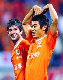 比賽之后的休息室里,矯哲還在問(wèn)韓鵬,“第一個(gè)球你是不是用頭頂進(jìn)去的?”韓鵬馬上糾正矯哲的說(shuō)法,“當(dāng)時(shí)球在我的側(cè)后方,我凌空用腳打進(jìn)去的!碧┥健翱瞻浴表n鵬在“齊魯?shù)卤取敝忻烽_(kāi)二度,幫助球隊(duì)奠定勝局的同時(shí)也找回了自己的狀態(tài)。