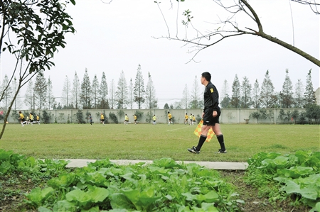 球員在菜地旁訓(xùn)練。 圖片來源:華西都市報(bào)