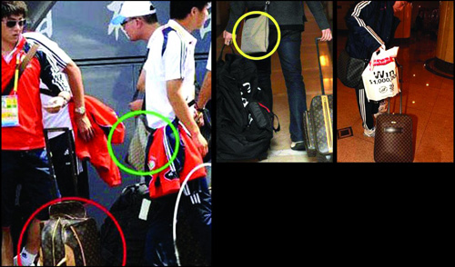 其實(shí),這支國(guó)足去年12月首次集中的時(shí)候,其行李中大量的“LV”包就引起了外界的極大興趣,當(dāng)時(shí)周海濱和崔鵬的世界名牌裝束還被拍下來(lái)發(fā)到了網(wǎng)絡(luò)上,LV拉桿行李箱,LV背包,還有Prada的腰帶、勞力士、江詩(shī)丹頓等名牌手表,甚至有人進(jìn)行了估算,光國(guó)足的裝備就價(jià)值百萬(wàn)元以上。