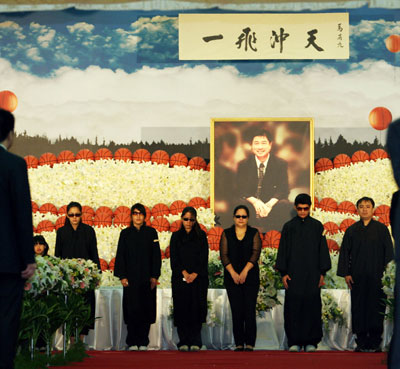 據(jù)臺灣媒體報道,錢一飛的靈堂由三百顆籃球布置而成,正中央懸掛國民黨參選人馬英九所題的“一飛沖天”挽聯(lián),充分顯示出錢一飛在戰(zhàn)場上拼戰(zhàn)不懈、戰(zhàn)績彪炳和一生精彩的籃球精神。