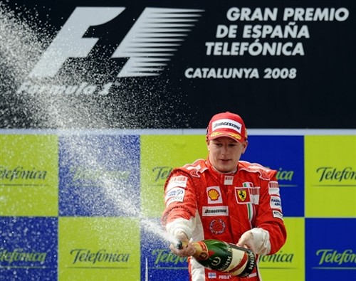當(dāng)?shù)貢r(shí)間27日晚,F(xiàn)1大獎(jiǎng)賽西班牙站比賽在巴塞羅那賽道燃起戰(zhàn)火,接連不斷的事故成為了本站比賽的主角,最終來自法拉利車隊(duì)的萊科寧和馬薩包攬了前兩名。圖為萊科寧慶祝奪冠。