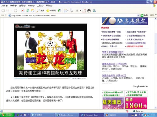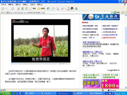 新快報(bào)記者在新浪播客欣賞到這首出爐不久的MV,它翻版于張作龍之《我想找對(duì)象》,說(shuō)的是一個(gè)叫張作龍的農(nóng)民兄弟主動(dòng)請(qǐng)纓當(dāng)國(guó)足的主教練,他自稱從小鍛煉了發(fā)達(dá)的叉腰肌,腿上功夫也了得,希望能與謝亞龍合作為中國(guó)足球效命。而他上任后的絕招是把中國(guó)功夫帶入球場(chǎng),保證無(wú)往不勝。MV對(duì)謝亞龍、球場(chǎng)暴力以及黑哨等作了批評(píng)。