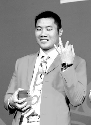 在昨天的頒獎儀式上,孟關良展示自己獲得的金指環(huán)