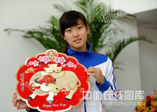 2009年1月7日,在新年即將來臨之際,中國女子佩劍隊隊員譚雪在北京拍攝新年照,向全國人民恭賀新年。