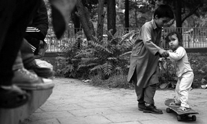 10歲女孩哈迪薩身上的米老鼠T恤表明她中產(chǎn)階級家庭出身,但她只能站在街邊看那些貧苦孩子玩,因為她害怕兩個哥哥手中的電線。去年9月,哈迪薩偷偷地玩了次滑板,結(jié)果雙腳被打出了血。“他們有權(quán)利打我!惫纤_說。