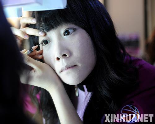圖為一名“籃球?qū)氊悺痹诒荣惽盎瘖y。(3月1日攝)新華社記者李鋼攝