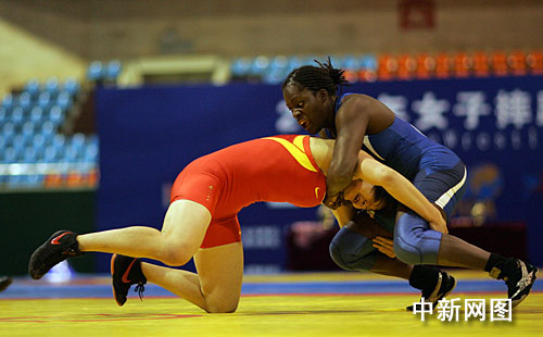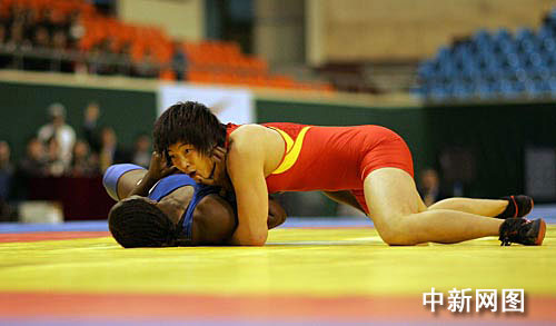 中新網(wǎng)3月22日電(張云)今日晚間,在太原市濱河體育中心進行的二00九世界女子摔跤錦標賽(團體賽)的決賽中,中國女隊不負眾望,以五比二的戰(zhàn)績?nèi)偌幽么箨,實現(xiàn)女子摔跤世界杯三連霸。加拿大隊獲得第二名,第三名由日本隊奪取,烏克蘭隊取德第四名成績。
