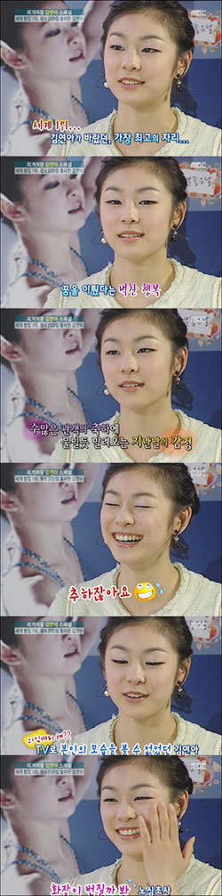 中新網(wǎng)4月30日電 據(jù)韓國《中央日報(bào)》報(bào)道,“花滑天后”金妍兒昨日做客MBC電視臺(tái),講述了頒獎(jiǎng)典禮的一些片段。她說:“聽到國歌響起眼淚就止不住,我又擔(dān)心哭的樣子不好看,會(huì)把妝弄花,費(fèi)了很大力氣想忍住,但眼淚還是自然地流下來了!