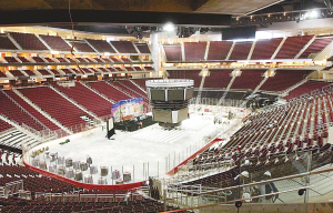 火箭的比賽不是在木地板上進(jìn)行的嗎?約什得意地笑了,“隱藏在255塊木地板下面,是一整塊冰!奔s什說(shuō)完,立馬摳起一塊地板,讓記者親手觸摸到足足有1英寸厚的冰層。原來(lái),豐田中心不單是火箭的主場(chǎng),同時(shí)也是休斯敦冰球隊(duì)的主場(chǎng)。每當(dāng)火箭比賽前,豐田中心工作人員就會(huì)在冰面上鋪起木地板。當(dāng)冰球隊(duì)比賽前,木地板會(huì)被撤走。由于美國(guó)的冰球賽季幾乎和NBA賽季起止時(shí)間一樣,因此火箭隊(duì)整個(gè)賽季其實(shí)都是在冰面上比賽的!案鼡Q地板的過(guò)程需要4小時(shí)到6小時(shí),我們?yōu)榈匕寰幜颂?hào)的,可以更換得很快!奔s什說(shuō),由于常常是在冰球比賽第二天就會(huì)進(jìn)行籃球比賽,因此工作人員會(huì)通宵達(dá)旦地工作,以保證籃球隊(duì)第二天早上的訓(xùn)練。