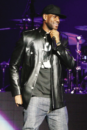 在離美國總統(tǒng)大選(11月4日)還有5天的時候,NBA騎士隊球星勒布朗·詹姆斯與美國著名說唱歌手Jay·Z一同出席了名為“最后的選擇”音樂會,為美國民主黨候選人巴拉克·奧巴馬拉票。當(dāng)晚,“小皇帝”一襲深色緊身衣外加黑色皮夾克外套,頭戴鴨舌帽,搖身一變成為說唱歌手,與好友Jay·Z一并邊唱邊跳,臺型十足。