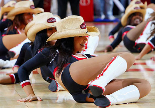 火箭拉拉女郎給我留下職業(yè)的印象還來(lái)自成功地采訪她們之后。蘇茜安排姑娘們跟我合影,她們嘻嘻哈哈地圍過(guò)來(lái),但是在快門閃下之前的一剎那,所有人立馬都露出訓(xùn)練有素的笑容。而我在看了照片之后發(fā)現(xiàn),她們肩并肩、手挽手,一個(gè)親密合作的POSE。