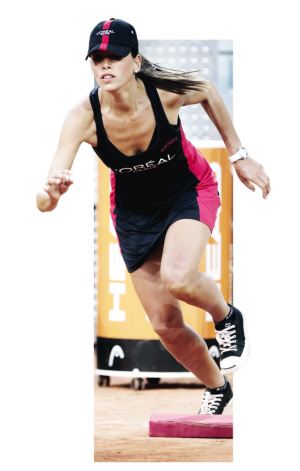 今年馬德里大師賽上的美女球童又換新裝了,一身吊帶緊身連衣裙依舊展現(xiàn)火辣身材,裙子兩邊是模擬紅土賽場(chǎng)的顏色,搭配以黑色為主的裙體,相得益彰,一頂鴨舌帽讓平時(shí)T臺(tái)上的姑娘們一下子多了些運(yùn)動(dòng)感。