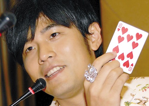 昨日下午,周杰倫以“雪碧”品牌代言人身份,來到廣州新長隆酒店舉行千人大型歌迷見面會,剛剛拍完電影《刺陵》的周杰倫似乎是在沙漠地帶待得太久,不僅主動要求記者提些“奇怪的問題”,而且有問必答,還在現(xiàn)場分別為歌迷與記者連玩了數(shù)場撲克魔術(shù)。他十分肯定地承認自己玩魔術(shù)的確有“喧賓奪主”的嫌疑,但仍自夸“魔術(shù)玩得太好,我還想明年準備做一場大型魔術(shù)主題演唱會”。