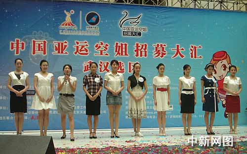 中新網(wǎng)武漢7月10日電 (徐金波 孫紅良 沈蕾)廣州亞運會組委會官方合作伙伴中國南方航空公司組織舉辦的“中國亞運空姐招募大匯”全國第一站,10日在武漢展開海選活動,當(dāng)天8000多名佳麗從武漢三鎮(zhèn)趕來,競選該選區(qū)的80個亞運空姐名額。