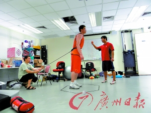 由于“病人”運(yùn)動(dòng)量極大,陳博士要求有一個(gè)專門的按摩師跟著朱芳雨,否則他的肌肉沒法恢復(fù)。宏遠(yuǎn)俱樂部把隊(duì)醫(yī)劉從順派了過去,他就負(fù)責(zé)每天幫助朱芳雨放松肌肉。但這也不僅僅是按摩師的工作,香港那邊還配備了超聲波治療儀和肌肉放松器,專門用來在大運(yùn)動(dòng)量之后,幫助運(yùn)動(dòng)員放松肌肉!斑@兩臺(tái)機(jī)子,據(jù)說就(值)100萬(元)!敝旆加暾f。