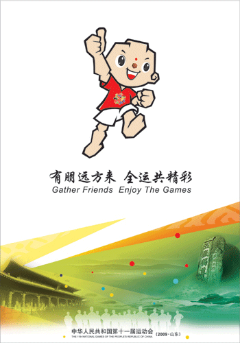 會徽形象宣傳畫下方畫面中表現(xiàn)了主會場的代表性建筑——“東荷西柳”的整體造型,并與大海的形態(tài)融為一體,通透疊加的顏色使用、最前方奔跑的人群,體現(xiàn)出此次運動會“和諧中國,全民全運”的主題。吉祥物形象宣傳畫的下方是孔廟和泰山的形象,與上方的泰山童子一起,準確傳達出山東的地域特色,同時還體現(xiàn)了山東好客、熱情、誠邀四方嘉賓的氛圍。主宣傳畫著力表現(xiàn)會徽與吉祥物,其形式與十一運會整體視覺形象相一致。