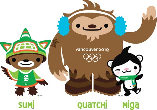 冬奧會(huì)的吉祥物是名叫“米加”的北極熊和名叫“魁特奇”的北美野人,而冬季殘奧會(huì)的吉祥物則是名叫蘇米的雷鳥(niǎo)精靈。