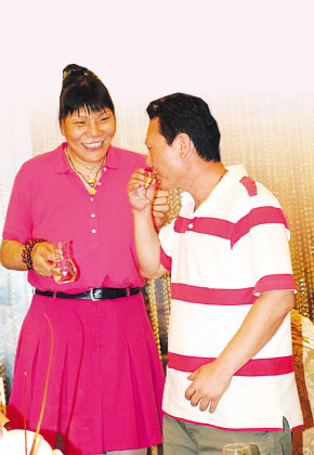 上午10點30分,一輛寶藍色的本田商務(wù)車抵達酒店門前,身著一襲寶藍色連衣裙的鄭海霞和西裝筆挺的夫婿徐慶華下車后迅速進入酒店,路人甚至都沒來得及認出海霞。11點30分,在一間不大的會議室內(nèi),隨著現(xiàn)場輕柔的樂曲,司儀宣布婚禮開始,現(xiàn)場100多位嘉賓、親友聚攏在婚禮臺四周,一同目睹了鄭海霞與丈夫徐慶華的優(yōu)雅現(xiàn)身。盡管對于此次婚禮鄭海霞夫婦一再要求低調(diào),但在前天的婚禮現(xiàn)場,一些必要的程序還是照常進行。大概是要難為一下昔日的“亞洲女籃第一中鋒”,現(xiàn)場司儀要求海霞對婆婆改口時用標(biāo)準(zhǔn)的河南話喊一聲“娘”,惹得見過無數(shù)大世面的鄭海霞當(dāng)場紅臉。但在親友們的一再鼓勵下,海霞還是羞澀地完成了任務(wù),大喊了一聲“娘”。