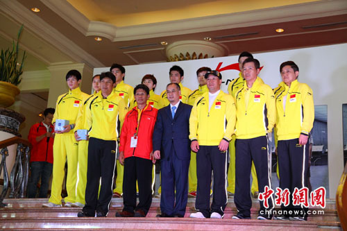 中新網(wǎng)5月9日電(記者 宗晨亮)2010年湯尤杯即將在5月9日-16日開打,國(guó)家羽毛球隊(duì)已抵達(dá)馬來西亞首都吉隆坡。大賽在即,近日國(guó)家羽毛球隊(duì)參加了“李寧-中國(guó)國(guó)家羽毛球隊(duì)誓師大會(huì)”,李寧到場(chǎng)與羽毛球隊(duì)總教練共同揭開了這次出征的新裝備,林丹、鮑春來等國(guó)家羽毛球隊(duì)主力隊(duì)員也身穿全新的比賽服裝集齊亮相,總教練李永波則代表國(guó)家羽毛球隊(duì)信心十足地表示“我們一定要在這次的湯尤杯上繼續(xù)取得佳績(jī),力爭(zhēng)衛(wèi)冕!
