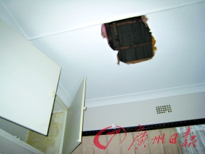 記者這次租住的是一處單體公寓,當記者回到公寓時,發(fā)現(xiàn)房間內(nèi)一片狼藉,衣物和雜物被擲得亂七八糟。這次盜賊采取的手法是記者聞所未聞的,大門、房門、窗戶一切完好,盜賊居然是揭開房頂?shù)姆客撸僭掖┨旎ò,從天而降,是名副其實的“飛天大盜”。最令人咋舌的是,“飛天大盜”居然能夠準確地砸開各個房間的天花板,全部都是從天而降,從天而走。