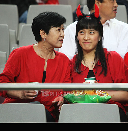 中新網(wǎng)6月18日電 已經(jīng)提前出線的韓國(guó)男足在昨天進(jìn)行的世界杯亞洲區(qū)預(yù)選賽中,以1-1戰(zhàn)平了來(lái)訪的伊朗隊(duì)。球隊(duì)主教練許丁茂的家人也來(lái)到了賽場(chǎng)邊,為韓國(guó)隊(duì)加油助威。韓國(guó)《中央日?qǐng)?bào)》捕捉到了許丁茂夫人和女兒在場(chǎng)邊的情形。