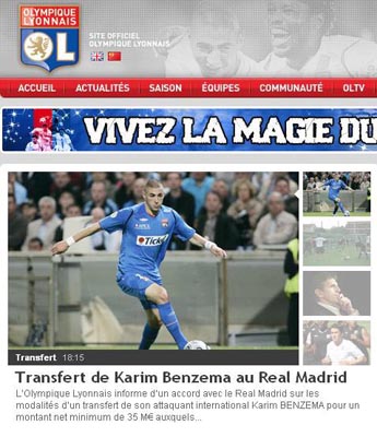 中新網(wǎng)7月2日電 北京時間今日凌晨,里昂官網(wǎng)宣布:球隊當(dāng)家前鋒本澤馬將加盟西甲豪門皇馬,轉(zhuǎn)會費為3500萬歐元。這是繼卡卡、C羅和阿爾比奧爾之后,弗洛倫蒂諾今夏為皇馬引進(jìn)的第4名強援。