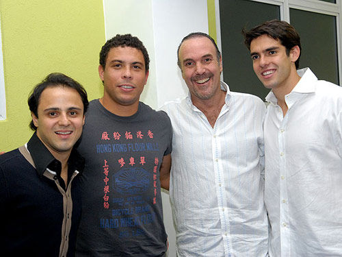 6 月10日是卡卡的兒子盧卡滿一周歲的日子,而當天小盧卡的父親卻正跟隨巴西隊迎戰(zhàn)巴拉圭隊。為了彌補這個遺憾,上周日,卡卡特意在巴西圣保羅為兒子補辦了一個生日宴會,邀請了埃拉諾、羅比尼奧、F1車手馬薩和羅納爾多等100多名嘉賓參加。光臨現(xiàn)場的其他嘉賓都是盛裝出席,沒想到羅納爾多卻穿著一件夠“潮 ”的體恤“閃亮”出場!衣服正面橫著幾個中文大字:“香港面粉廠”,旁邊像對聯(lián)一樣地印著“上等中糧白粉、特殊工藝……”等字樣,搞笑之極。在那排“香港面粉廠”的文字下面還有三個中文“單車嘜”,肥羅在搞笑之余還不忘體育鍛煉。
