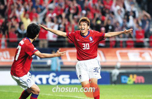 在世界杯開幕前26天進(jìn)行的韓國(guó)國(guó)內(nèi)最后一場(chǎng)熱身賽上,韓國(guó)隊(duì)以2比0戰(zhàn)勝南美球隊(duì)厄瓜多爾。當(dāng)天勝利的主角是李升烈和李菁龍這兩名年輕隊(duì)員。