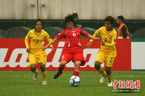 中新網(wǎng)成都5月20日電(記者劉忠俊 劉賢 楊杰)2010年女足亞洲杯A組比賽拉開戰(zhàn)幕,亞洲勁旅朝鮮女足迎戰(zhàn)泰國女足。開場4分鐘朝鮮隊連進(jìn)2球,下半場再進(jìn)一球,以3:0大勝泰國隊。