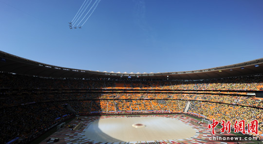 中新網(wǎng)6月11日電 北京時(shí)間11日晚8時(shí)10分,南非世界杯足球賽開(kāi)幕儀式在約翰內(nèi)斯堡的足球城體育場(chǎng)拉開(kāi)帷幕。