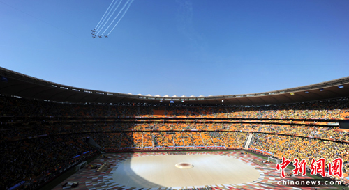 中新網(wǎng)6月11日電 隨著羅伯特凱利演唱起本屆世界杯主題曲《勝利的召喚》,南非世界杯開幕式正式落下了帷幕。一個多小時之后的22:00,本屆世界杯的揭幕戰(zhàn)就將在這個體育場打響,東道主南非隊將迎來小組賽的首個對手、中北美勁旅墨西哥。