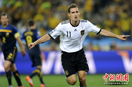 中新網(wǎng)6月14日電 在今天凌晨進(jìn)行的一場(chǎng)南非世界杯小組賽中,德國(guó)隊(duì)迎來(lái)了首個(gè)對(duì)手澳大利亞,經(jīng)過(guò)90分鐘激戰(zhàn),憑借波多爾斯基、克洛澤穆勒和卡考的進(jìn)球,在以4-0狂勝對(duì)手的同時(shí),也創(chuàng)下了迄今為止南非世界杯的最大比分。