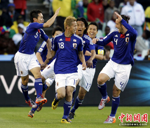中新網(wǎng)6月14日電 北京時(shí)間22點(diǎn)整,南非世界杯E組日本與喀麥隆隊(duì)的比賽打響,雙方在布隆方丹的自由州球場(chǎng)展開(kāi)爭(zhēng)奪。最終經(jīng)過(guò)90分鐘激戰(zhàn),日本隊(duì)?wèi){借本田圭佑的進(jìn)球1-0擊敗喀麥隆,在小組出線之路上占得先機(jī)。