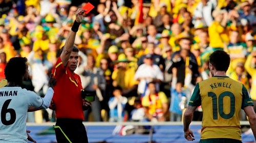 因為這一爭議紅牌,科威爾不僅要離開今天的賽場,不能再參加澳大利亞小組賽第三輪的比賽,而且很可能要就此永遠地告別世界杯。