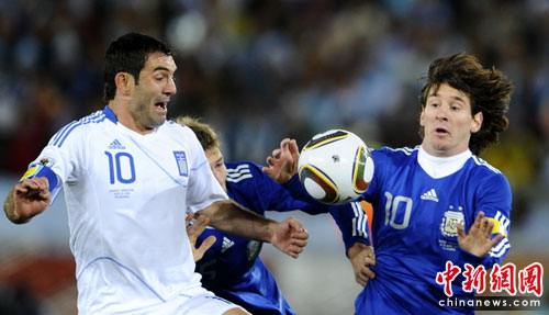 中新網(wǎng)6月23日電 在今天凌晨進行的一場世界杯小組賽第三輪的比賽中,阿根廷隊在波羅瓜尼的彼得-莫卡巴球場迎來了希臘隊的挑戰(zhàn)。最終憑借德米凱利斯和帕勒莫的進球,他們以2-0擊敗希臘,列小組第一出線。他們在1/8決賽中的對手將是中北美勁旅墨西哥隊。
