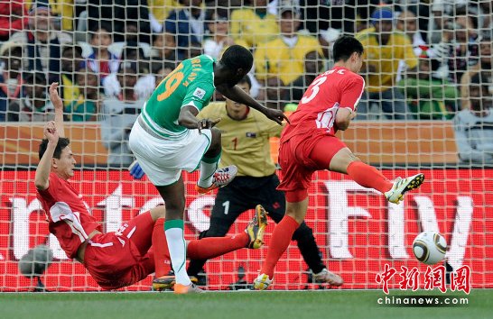 中新網(wǎng)6月25日電 北京時間25日22時,朝鮮隊迎來自己在南非世界杯的絕唱:在G組的比賽中迎戰(zhàn)科特迪瓦。憑借著亞亞圖雷、羅馬里奇和卡盧的進(jìn)球,科特迪瓦隊3比0擊敗朝鮮隊。兩隊分別以4分和0分排名小組第三和第四,雙雙被淘汰出局。本屆世界杯之旅,朝鮮隊三戰(zhàn)盡墨,進(jìn)1球失12球,小組墊底。