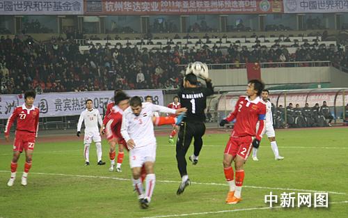 中新網(wǎng)1月7日電 昨日傍晚,2011年卡塔爾第15屆亞洲杯預(yù)選賽D組第5輪的首場比賽在杭州市黃龍?bào)w育場進(jìn)行,由中國隊(duì)主場迎戰(zhàn)敘利亞隊(duì)。經(jīng)過90分鐘的激戰(zhàn),雙方以0比0互交白卷,攜手晉級。第40分鐘杜威前場送出直塞,邵佳一反越位單刀射門,但浪費(fèi)了全場最好的一次機(jī)會。