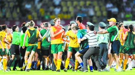 8月3日晚,中國青年女足在武漢2∶1險(xiǎn)勝澳大利亞隊(duì),亞青賽兩連勝提前小組出線,但在比賽結(jié)束后,雙方發(fā)生沖突,一名澳大利亞球員將中國球員張?jiān)酱虻,雙方替補(bǔ)球員和教練見狀全部沖到場內(nèi),一片混亂之后,經(jīng)過亞足聯(lián)官員的親自協(xié)調(diào),事件才平息。據(jù)了解,澳球員之所以“發(fā)飆”,是覺得輸?shù)煤堋案C囊”,覺得“中國隊(duì)做了裁判工作”。路透社的報(bào)道說“這起事件無疑對中國足球的聲譽(yù)又是一次打擊。 ”但事實(shí)上,算上上周日中超聯(lián)賽重慶隊(duì)主教練阿里·哈恩的“瘋狂咆哮”,連續(xù)兩次都是外國教練和外國球員在中國綠茵撒野,這里必須要問一句:憑什么?