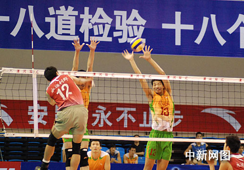 中新網(wǎng)漯河8月29日電(記者 關(guān)濤 師紅壘 通訊員 林波)8月28日,2009年全國(guó)男排錦標(biāo)賽(雙匯賽區(qū))在漯河市體育館展開(kāi)了最后一天的八場(chǎng)決賽。引人注目的東道主河南隊(duì)與江蘇隊(duì)冠亞軍爭(zhēng)奪戰(zhàn)中,5局激烈較量之后,河南隊(duì)以2:3遺憾敗北,再次與冠軍失之交臂屈居亞軍,江蘇男排問(wèn)鼎冠軍,