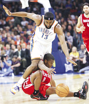 在剛剛加盟火箭隊(duì)的06-07賽季,“暴力扣將”斯威夫特有一天在家里休息,飛來一只蒼蠅飛到他的眼睛上,他用粗大的手指去揉眼睛,結(jié)果給揉出了結(jié)膜炎被迫缺席了9場比賽,據(jù)說用手指揉眼睛發(fā)生結(jié)膜炎的概率是百萬分之一。