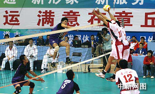 中新網(wǎng)濟(jì)南章丘10月27日電(記者 胡洪林 張譯文)正在此間進(jìn)行的中國(guó)第十一屆運(yùn)動(dòng)會(huì)男子排球決賽冠亞軍爭(zhēng)奪戰(zhàn)中,對(duì)關(guān)鍵球把握出色的上海隊(duì)以3:0的絕對(duì)優(yōu)勢(shì)成功衛(wèi)冕,解放軍隊(duì)獲銀牌。