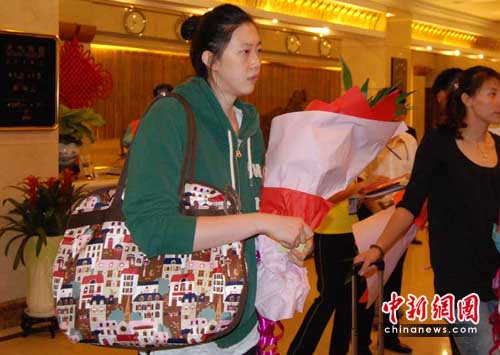 由于飛機(jī)晚點,中國女排姑娘抵達(dá)我市比原定時間足足晚了1個多小時。當(dāng)大巴車停穩(wěn)以后,女排領(lǐng)隊胡進(jìn)第一個走下車來,向眾人打招呼,緊隨其后的則是身著米黃色T恤衫的主帥王寶泉,隨后15名隊員陸續(xù)下車,接受學(xué)生們獻(xiàn)上的鮮花。