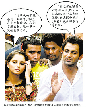 4月5日,印度警方扣押了巴基斯坦板球明星馬利克的護(hù)照,印度警方稱(chēng)馬利克迎娶米爾扎的舉動(dòng)可能犯下了重婚罪。
