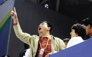 昨天的決賽來了大量的江蘇拉拉隊(duì),他們本想見證劉歡緣奪冠的激動(dòng)時(shí)刻?墒茄矍鞍l(fā)生的這一切讓他們不敢相信,甚至極度氣憤。裁判改判后,拉拉隊(duì)“黑哨”聲已經(jīng)響徹體育館。