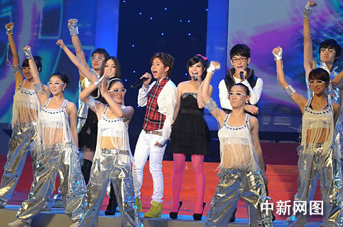 500位大學(xué)生組成的變幻方陣化身為“小光立方”,時尚動感,在晚會過程中配合舞美和演出呈現(xiàn)不同的圖案或LOGO。