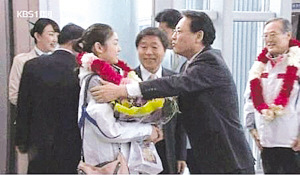據(jù)悉,本月2日,溫哥華冬奧會韓國代表團(tuán)回國之時,韓國文化部長柳仁存親自到仁川機場迎接。在此期間,KBS一直負(fù)責(zé)整個過程的錄制過程,柳仁存部長被拍到在給金妍兒佩戴花環(huán)時,曾試圖擁抱金妍兒,但金妍兒顯然對這一舉動比較介意,有意地向后退縮,但柳部長仍強行兩手抱住金妍兒,表情更是有些“猥瑣”。