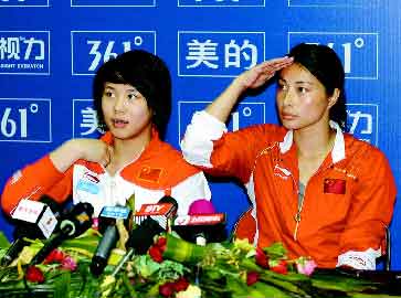當(dāng)郭晶晶與搭檔王涵拿到女子雙人三米板金牌之后,現(xiàn)場頓時沸騰了。觀眾為郭晶晶的精彩表演而吶喊,記者則開始在新聞發(fā)布會通道搶占地盤,幾十位記者猶如“從天而降”一般堵住了前往新聞發(fā)布會的必經(jīng)通道。在場的武警見勢不妙,立即開始疏散,這時一位從場內(nèi)出來的武警向新聞發(fā)布會通道外的武警喊道,“快,快,擋出一條路,讓她過去!