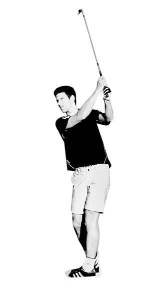 剛剛看過“老虎”伍茲揮桿英姿的照片,小德馬上就現(xiàn)學現(xiàn)賣了起來,小碎步地準備,適應性地揮桿,開始擊球,居然沒打到。