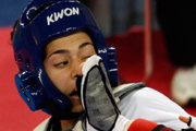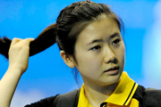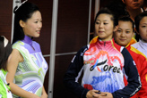 臺(tái)球女子美式8球單打亞軍、韓國(guó)選手金佳映,參加頒獎(jiǎng)儀式前,饒有興致地向禮儀小姐學(xué)習(xí)儀態(tài)。